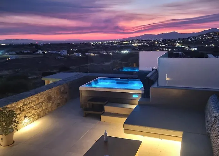 Η Mystic Horizon Βίλα Mykonos Town απέχει περίπου 2 χλμ. από την Εκκλησία της Παναγίας της Παραπορτιανής και διαθέτει βεράντα με θέα στη θάλασσα.
