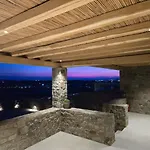De 2-slaapkamer Mystic Horizon Villa Mykonos Town ligt op ongeveer 25 minuten wandelafstand van Windmolens van Mykonos en nodigt gasten uit om te genieten van een terras.